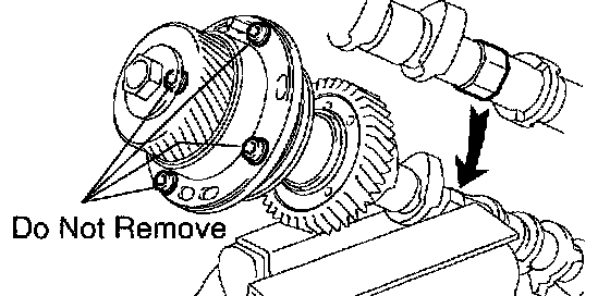 ^ The 4 bolts shown in the illustration determine the backlash of the gear in the timing tube, so do not remove them. If any of the 4 bolts are removed, install a new timing tube assembly.