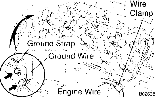 b. Remove the bolt, and disconnect the ground wire from the LH cylinder head.
