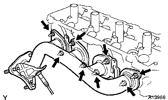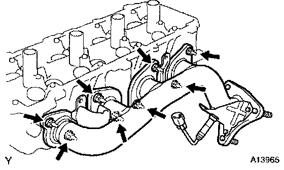 b. Remove the 8 nuts, exhaust manifold and gasket.