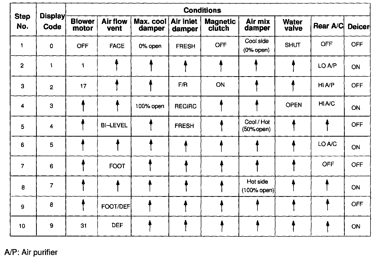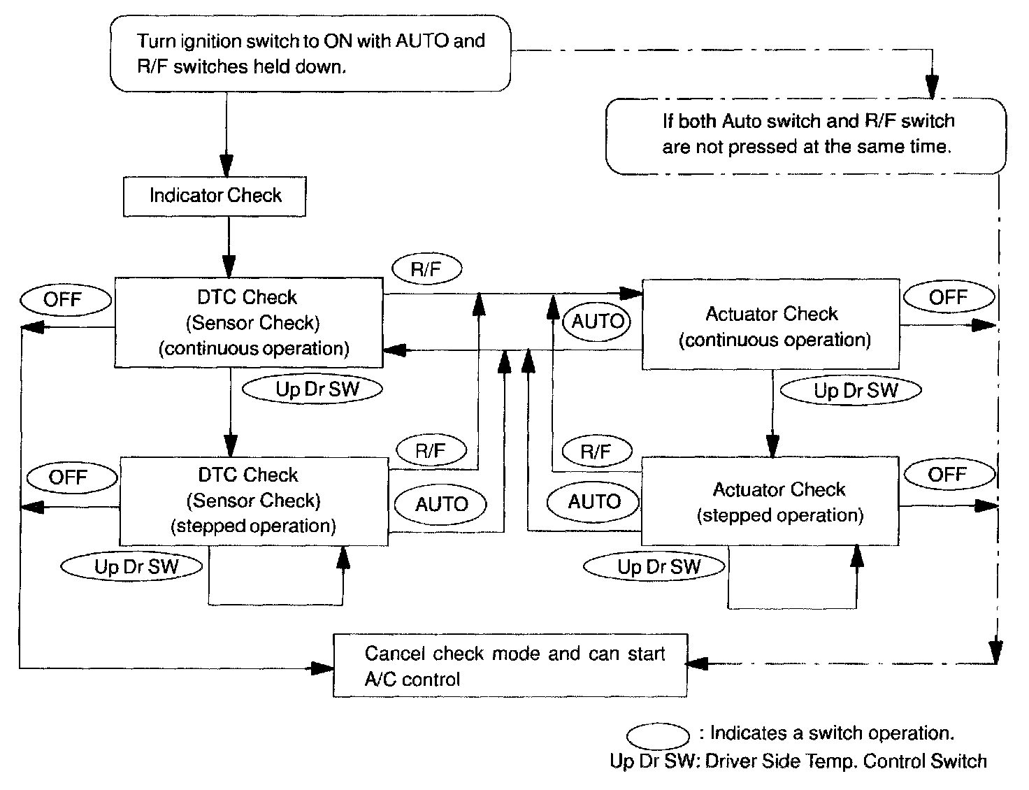 LIST OF OPERATION METHODSBy operating each of the A/C control switches as shown in the diagram below, it is possible to enter the diagnosis check mode.