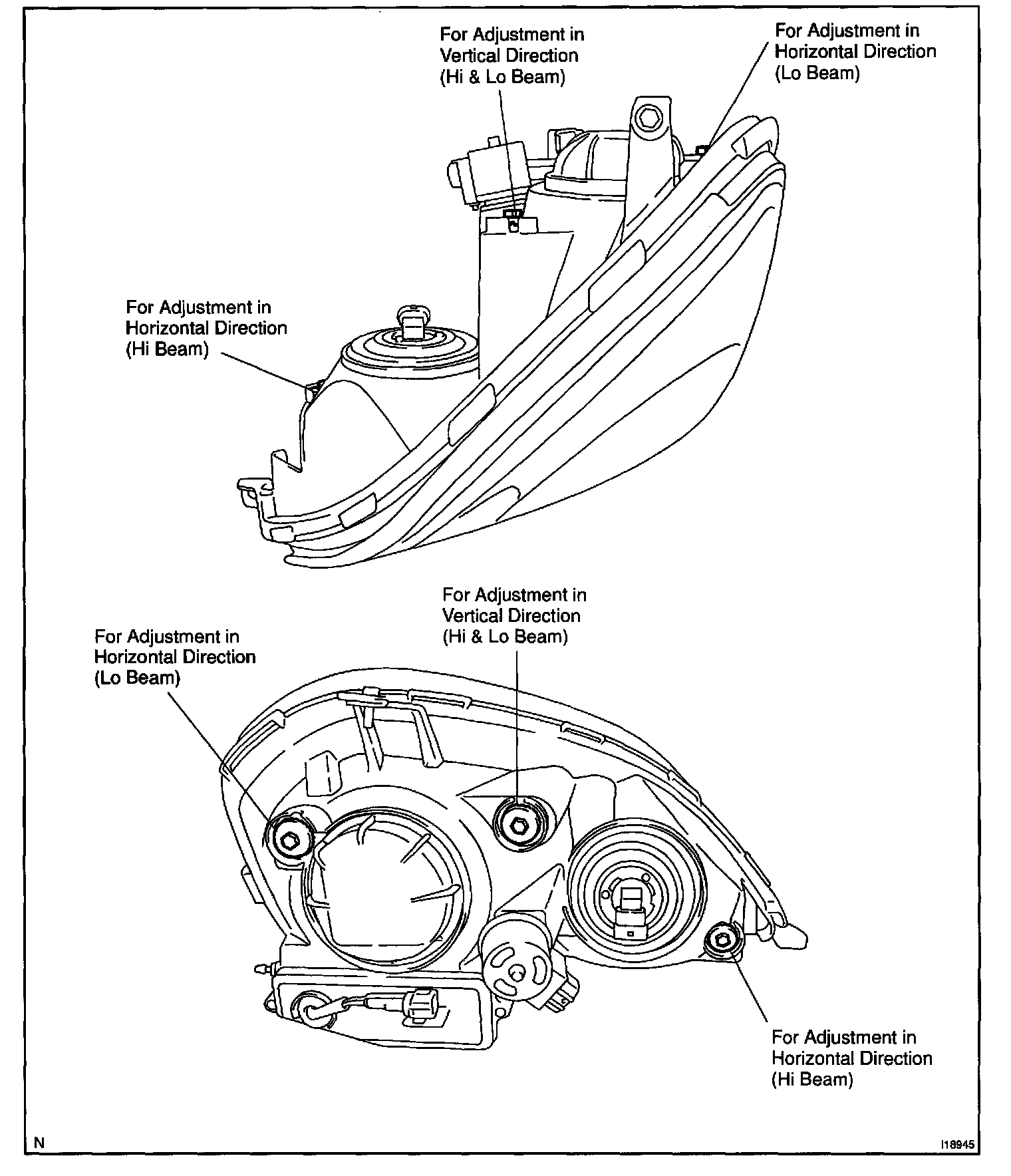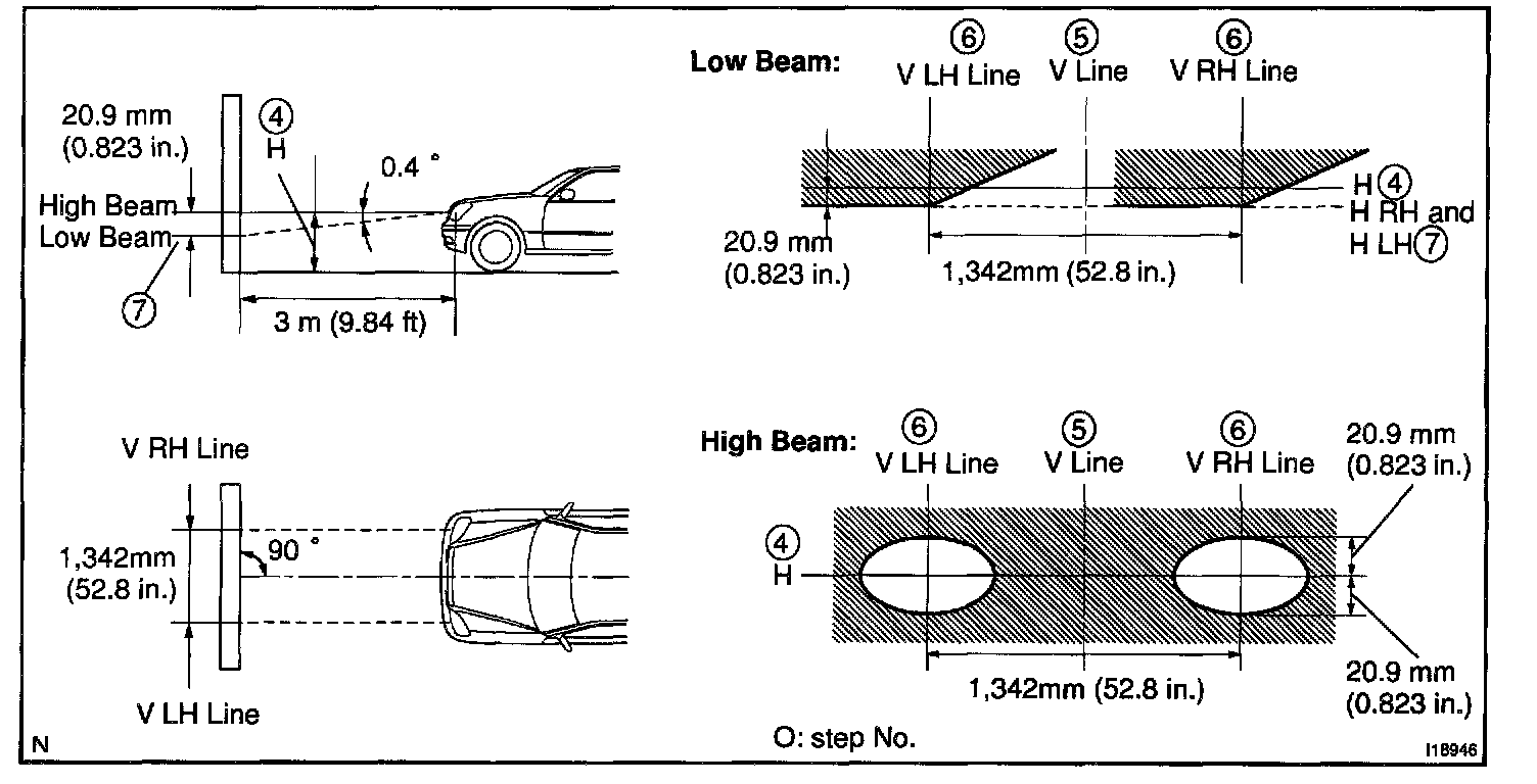 HINT: As shown in the illustration, adjust each aim of the RH and LH lights.