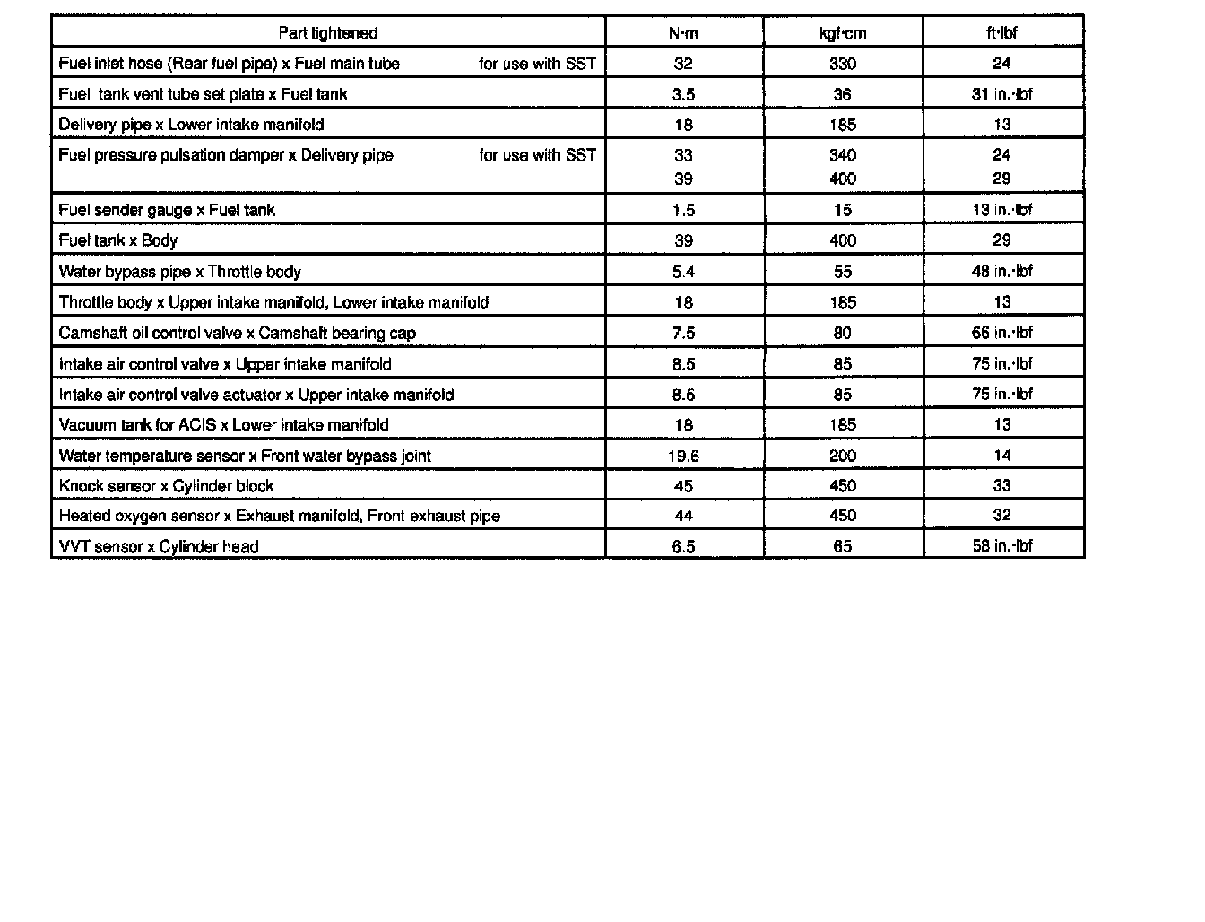 TORQUE SPECIFICATION