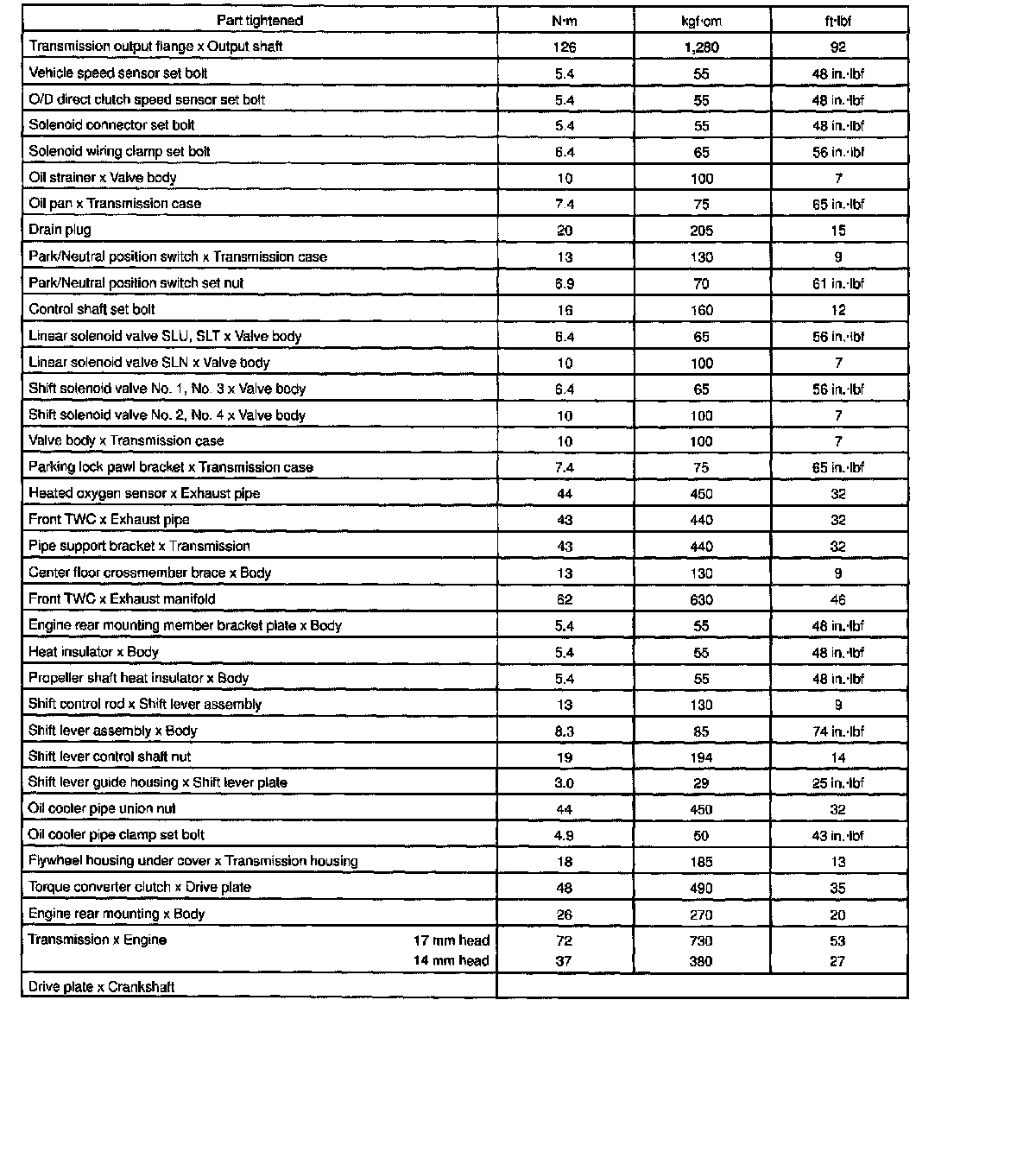 Torque Specifications