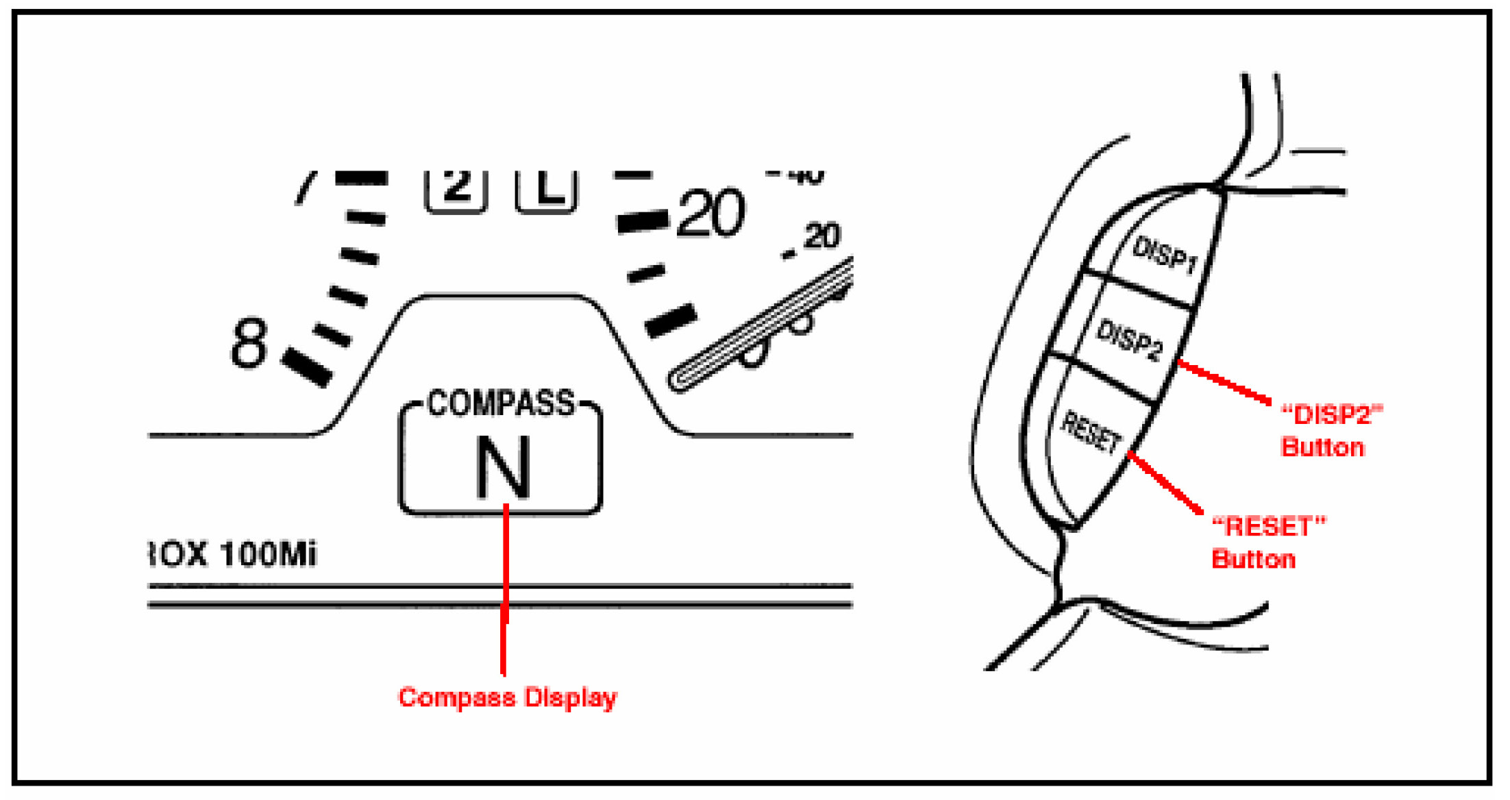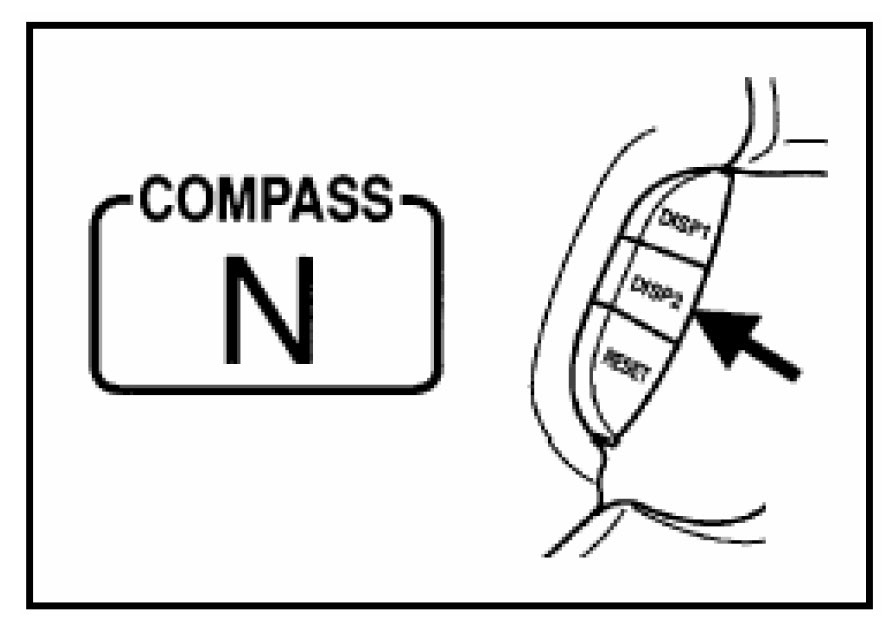 4. Start the engine and push the "DISP2" button on the steering wheel several times to display the direction (N, NE, E, SE, S, SW, W, NW) on the multi-information display (see illustration).
