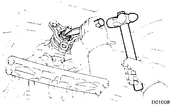 c. Tap the output flange with a plastic hammer to remove it.