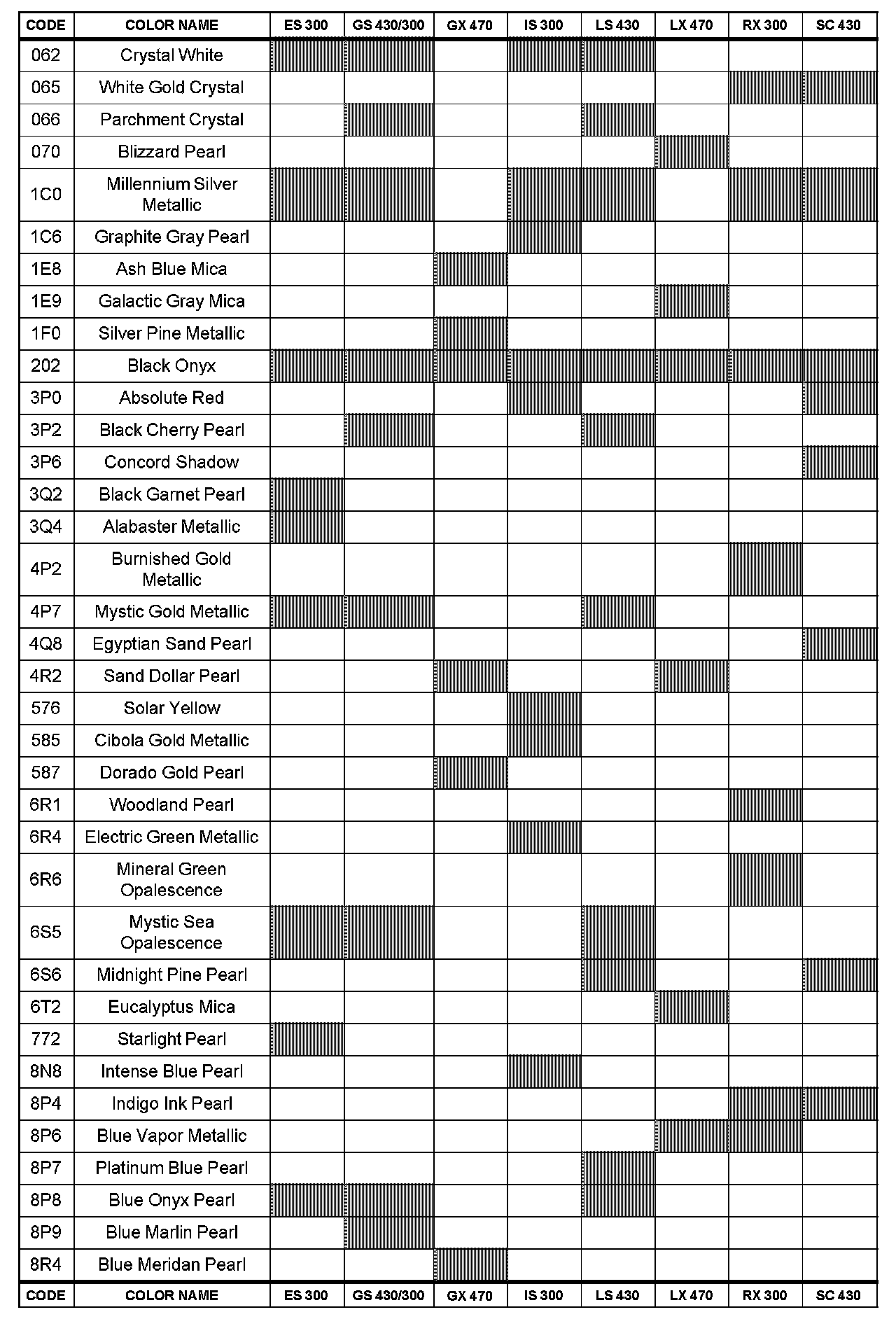 Attached for your reference is a list of all 2003 model year OEM paint codes.