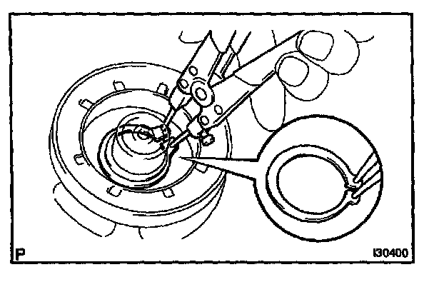 b. Using a snap ring expander, install a new snap ring with the chamfered side facing up.