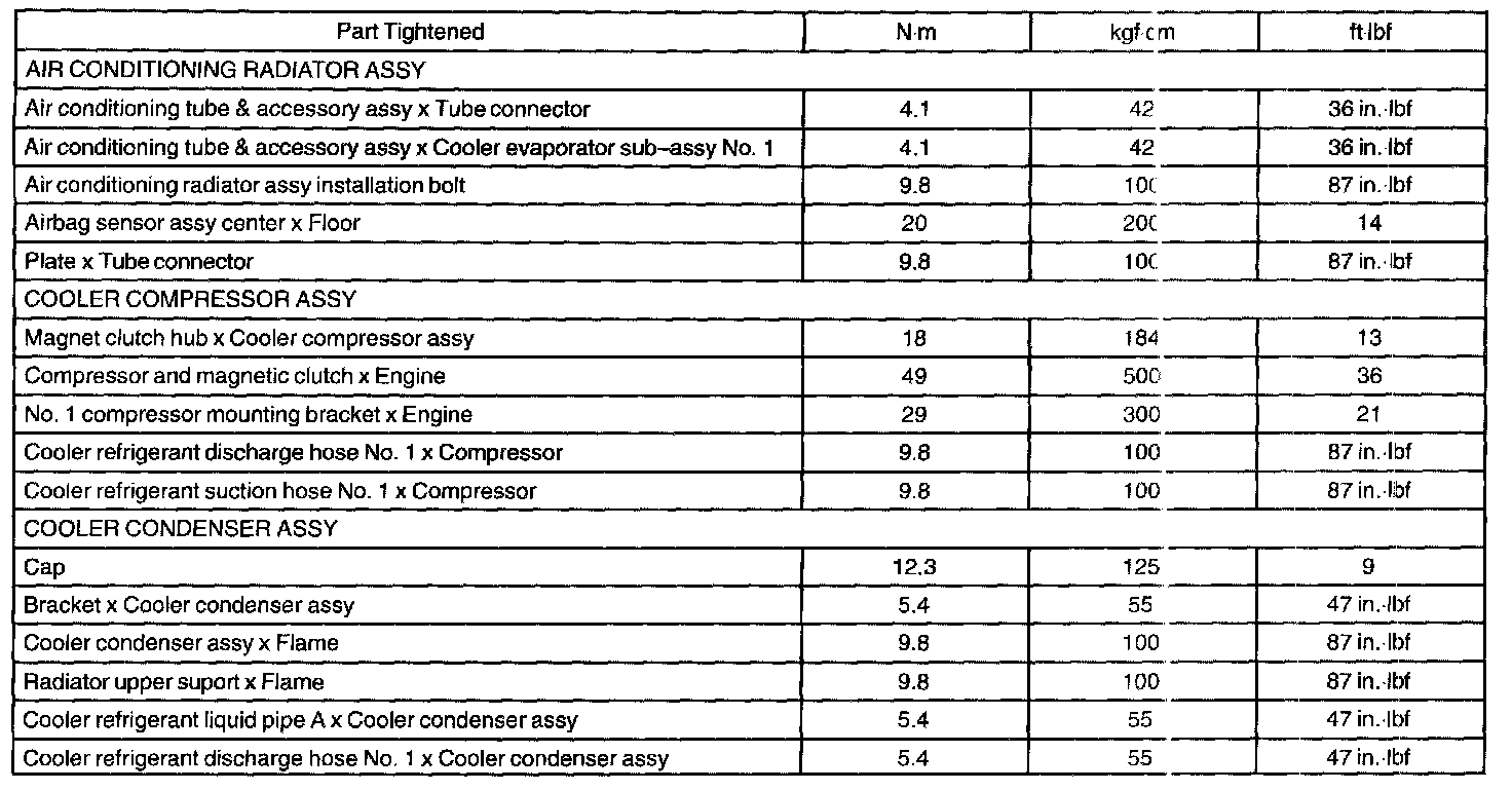 Heater And Air Conditioner - Torque Specification: