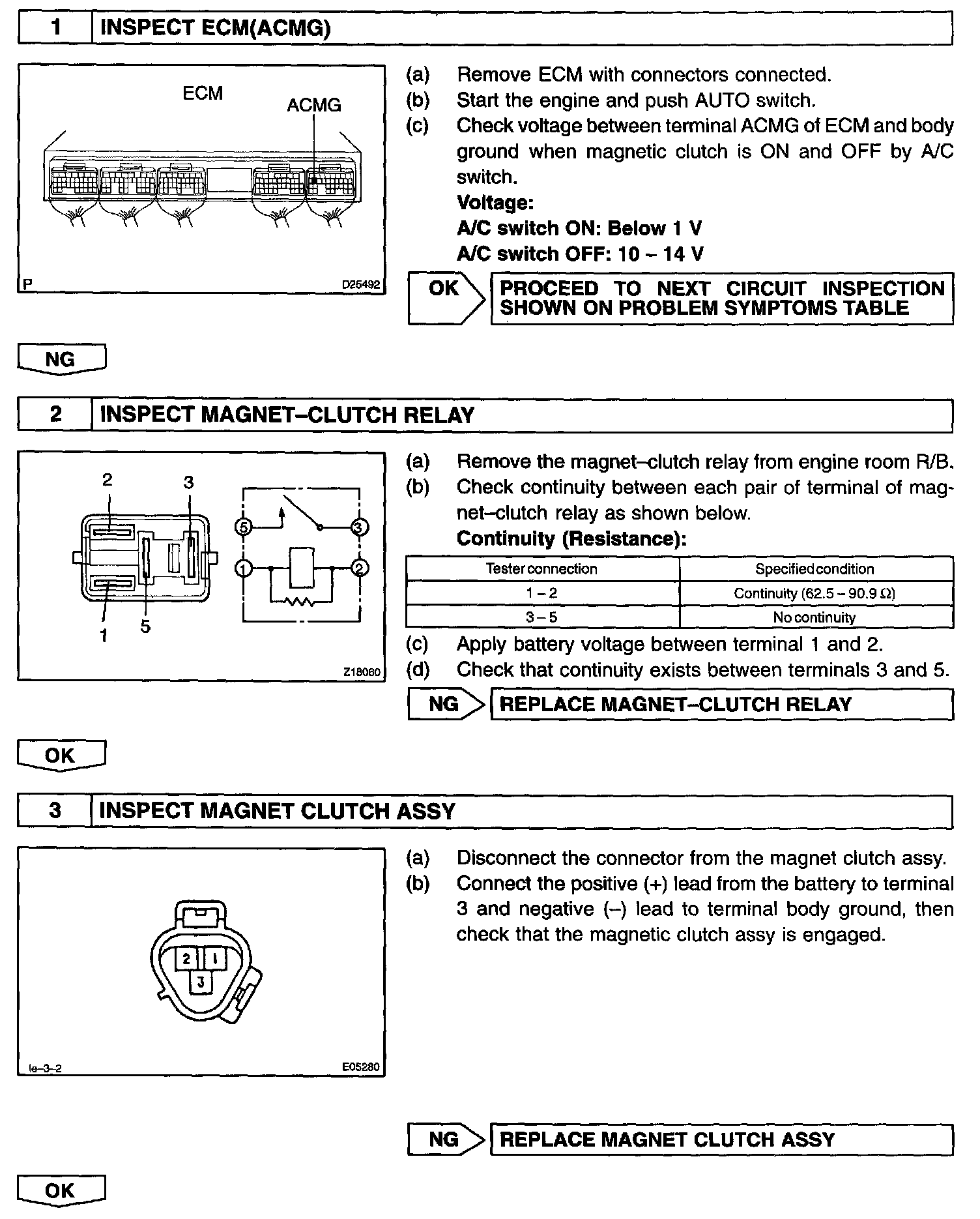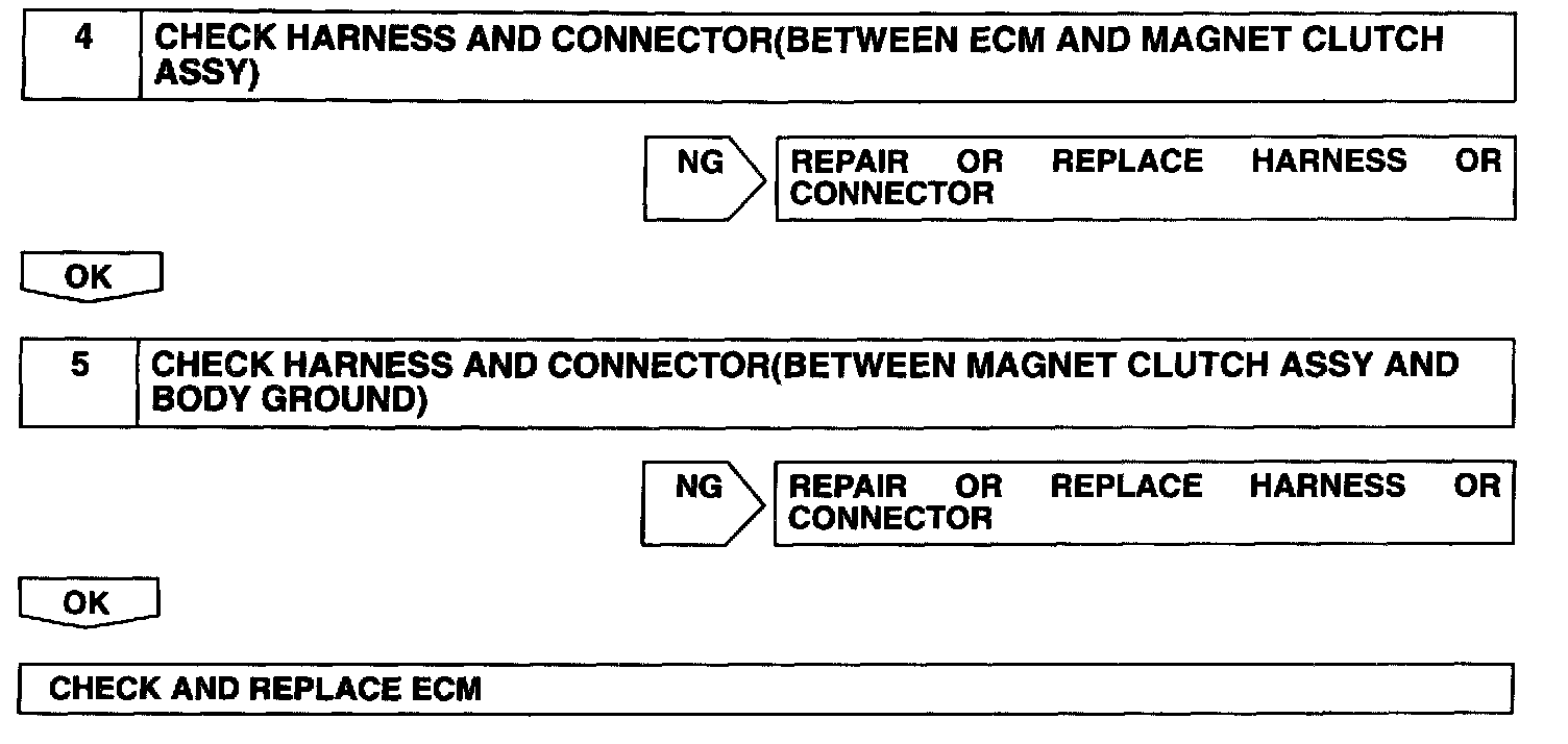 CIRCUIT DESCRIPTIONThe air conditioning amplifier outputs the magnetic clutch ON signal from terminal MPX to the ECM receives this signal, it sends a signal from terminal ACMG and switches the magnetic clutch relay ON, thus turning on the magnetic clutch
