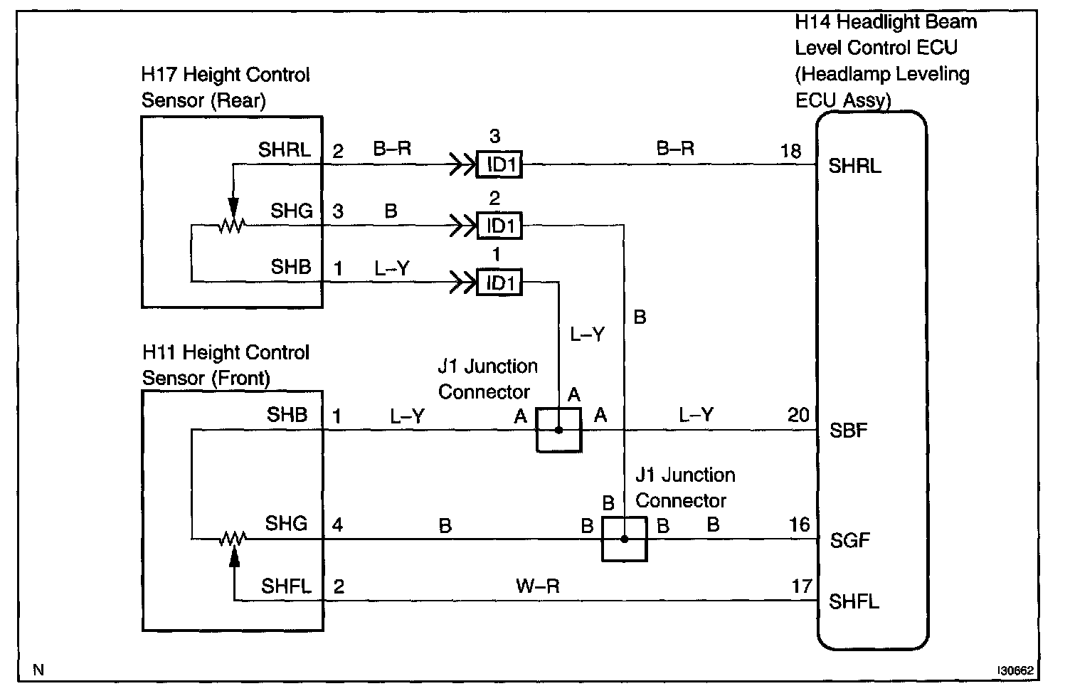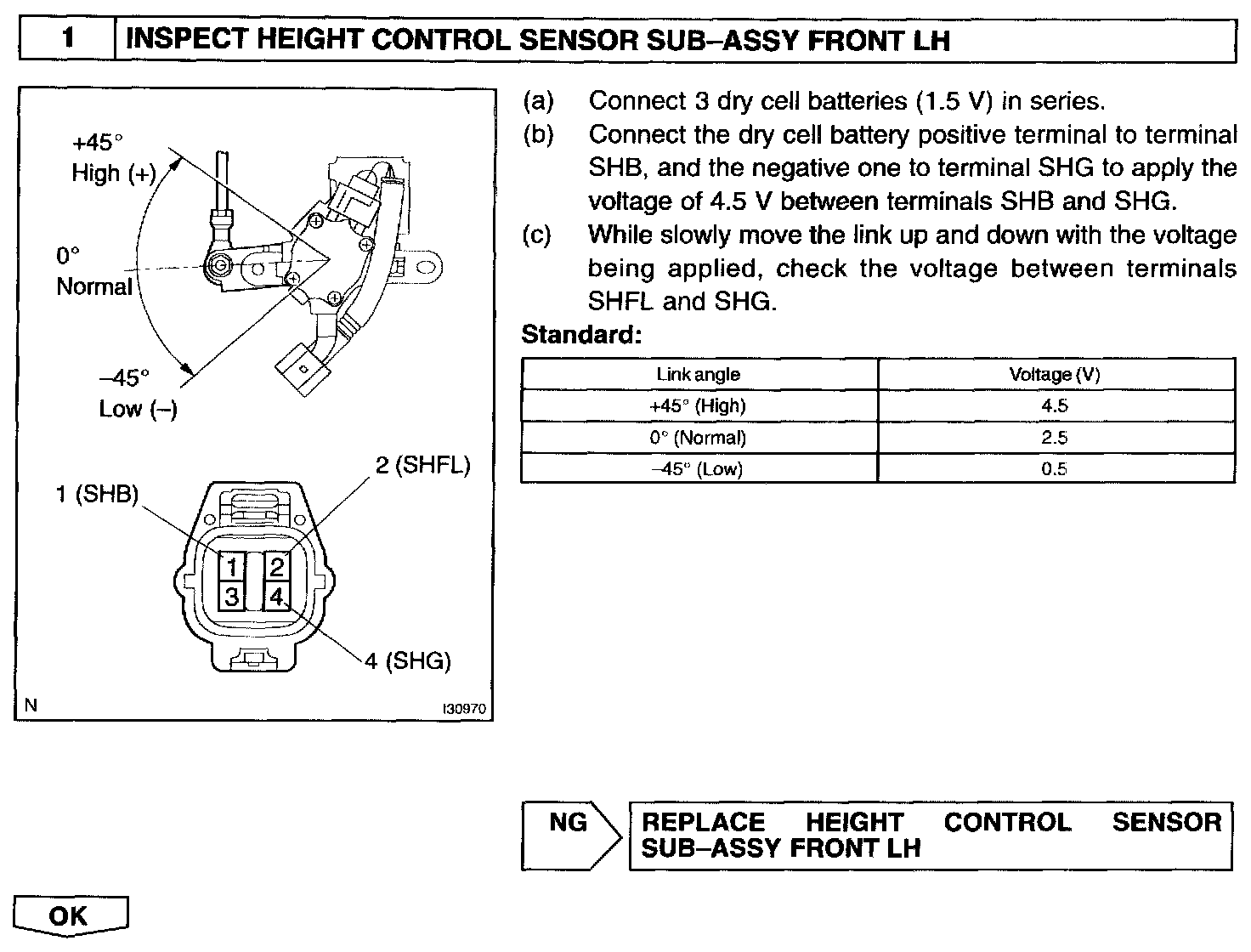 The voltage at the power source of the height control sensor is corrected when SHRL or SHFL is detected.