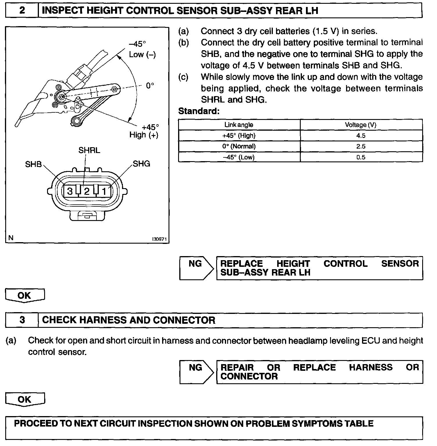 The headlight beam level control ECU calculates a height value from the height control sensor signal and the voltage at the power source of the height control sensor.