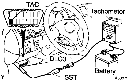 1. Using SST, connect tachometer probe to terminal TAC of the DLC3.