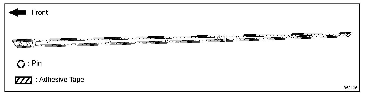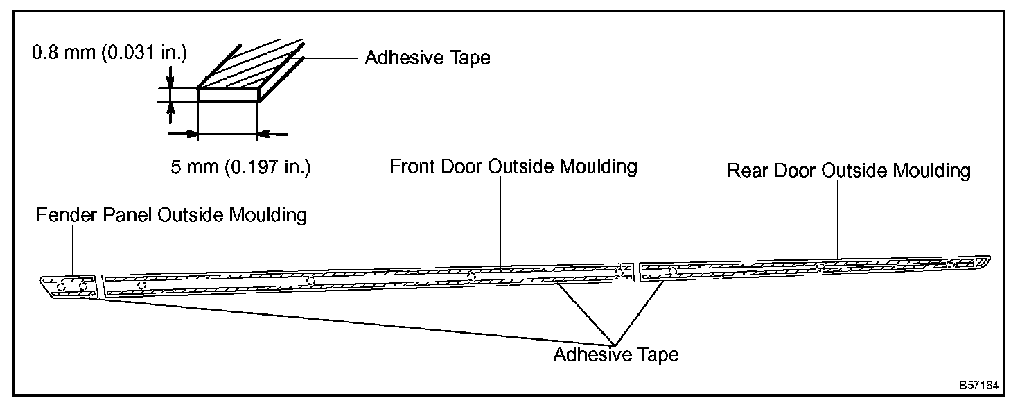 4. Apply new adhesive tape to the moulding as shown in the illustration.
