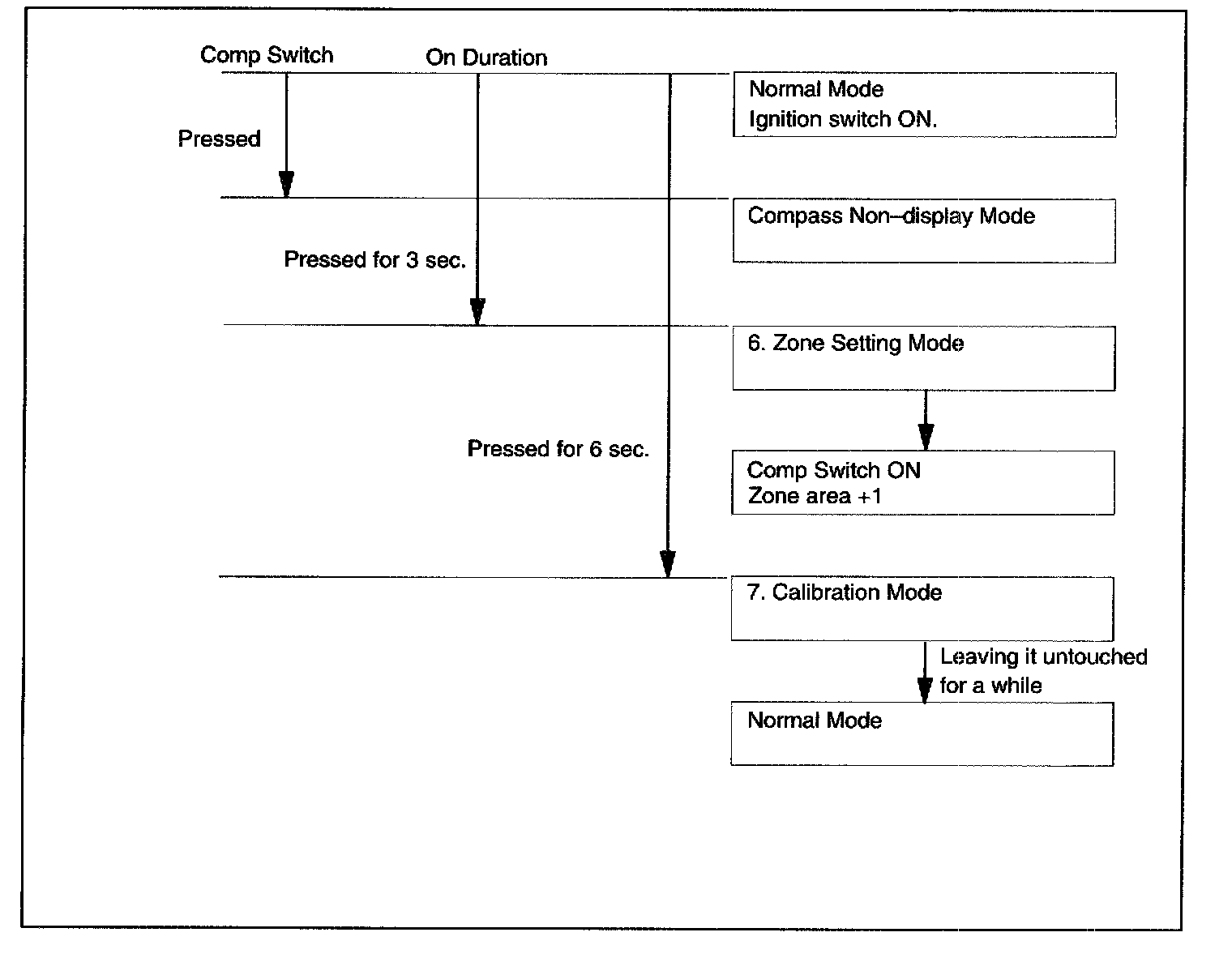 a. Pressing the comp switch for 3 seconds. In the normal mode will activate the zone setting mode. A number (1-15) is displayed on the compass display.