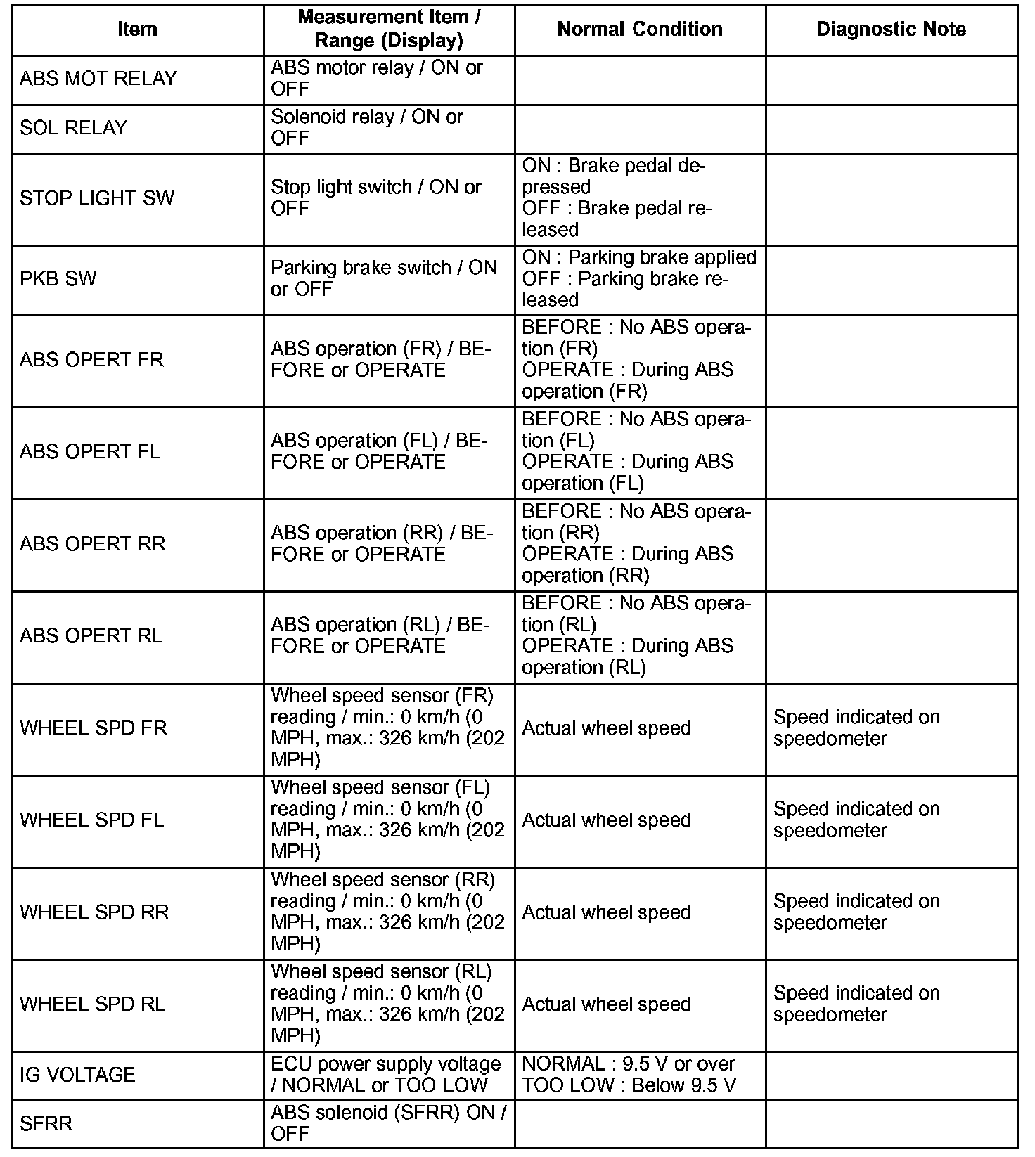 DATA LISTHINT: According to the DATA LIST displayed by the hand-held tester, you can read the value of the switch, sensor, actuator and so on without parts removal. Reading the DATA LIST as a first step of troubleshooting is one of the method to shorten the labor time.