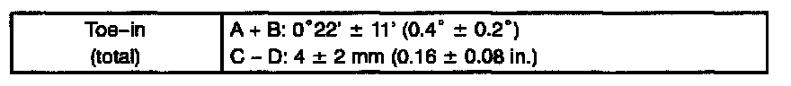 If the toe-in is not within the specified value, inspect and replace the suspension parts if necessary.