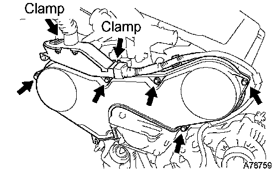 b. Remove the 5 bolts and timing belt cover.