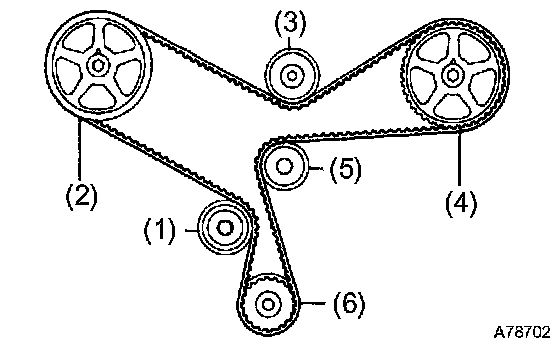 ^ Do not use the timing belt tension when installing or removing the mounting bolt of the camshaft timing pulley.