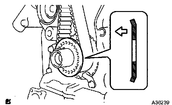 ^ If there is a trace of water and/or oil on the timing belt, repair the leakage and install a new timing belt.
