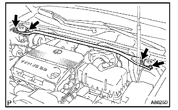 (a) Remove the 4 nuts, then remove the front suspension upper brace center and 4 spacers.