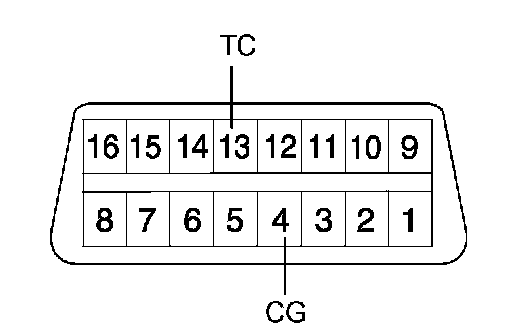 1. Using SST, connect terminals 13 (TC) and 4 (CG) of the DLC3.