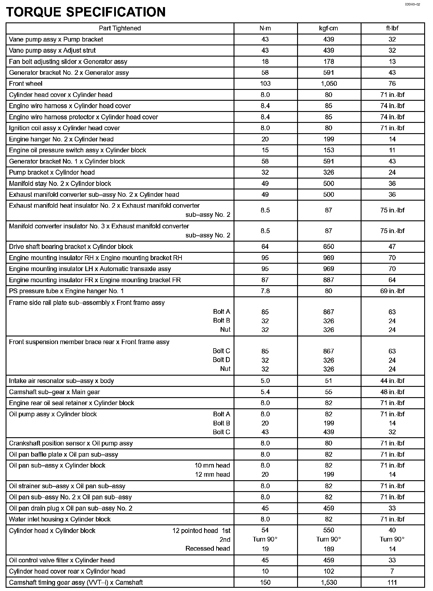 Engine Mechanical - Torque Specification Part 2: