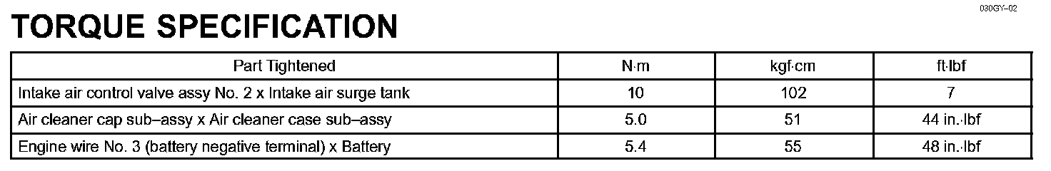 Intake - Torque Specification:
