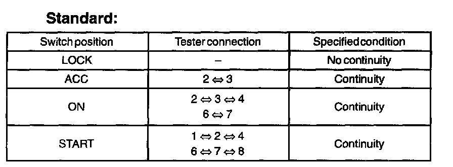 INSPECT IGNITION OR STARTER SWITCH ASSY