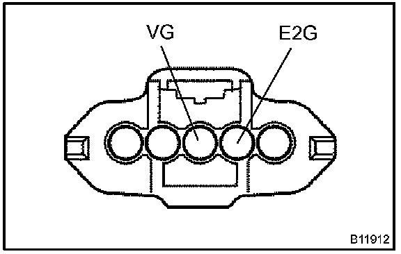 d. Using a voltmeter, connect the positive (+) tester probe to terminal VG, and negative (-) tester probe to terminal E2G.