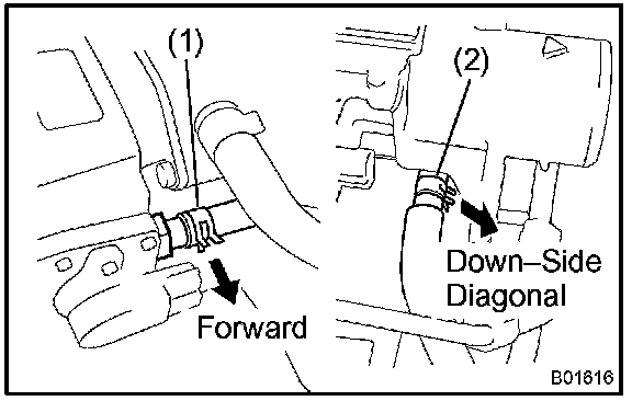 - Install the with its craw direction for (1) forward and down-side diagonal (engine side about 45°) for (2).