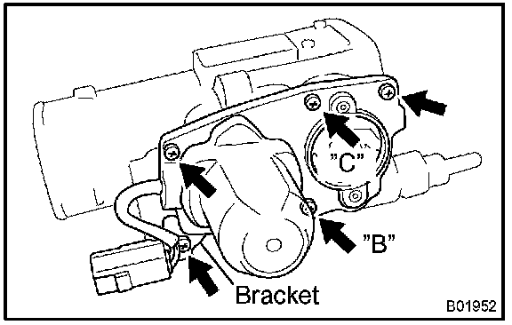 5. Temporarily install the cover with the 2 screws "B" and "C".