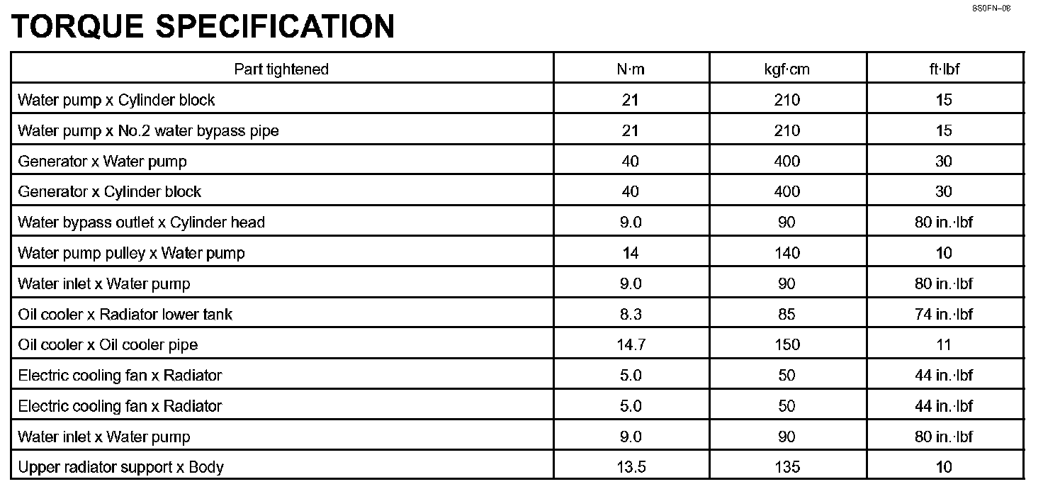 Cooling - Torque Specification: