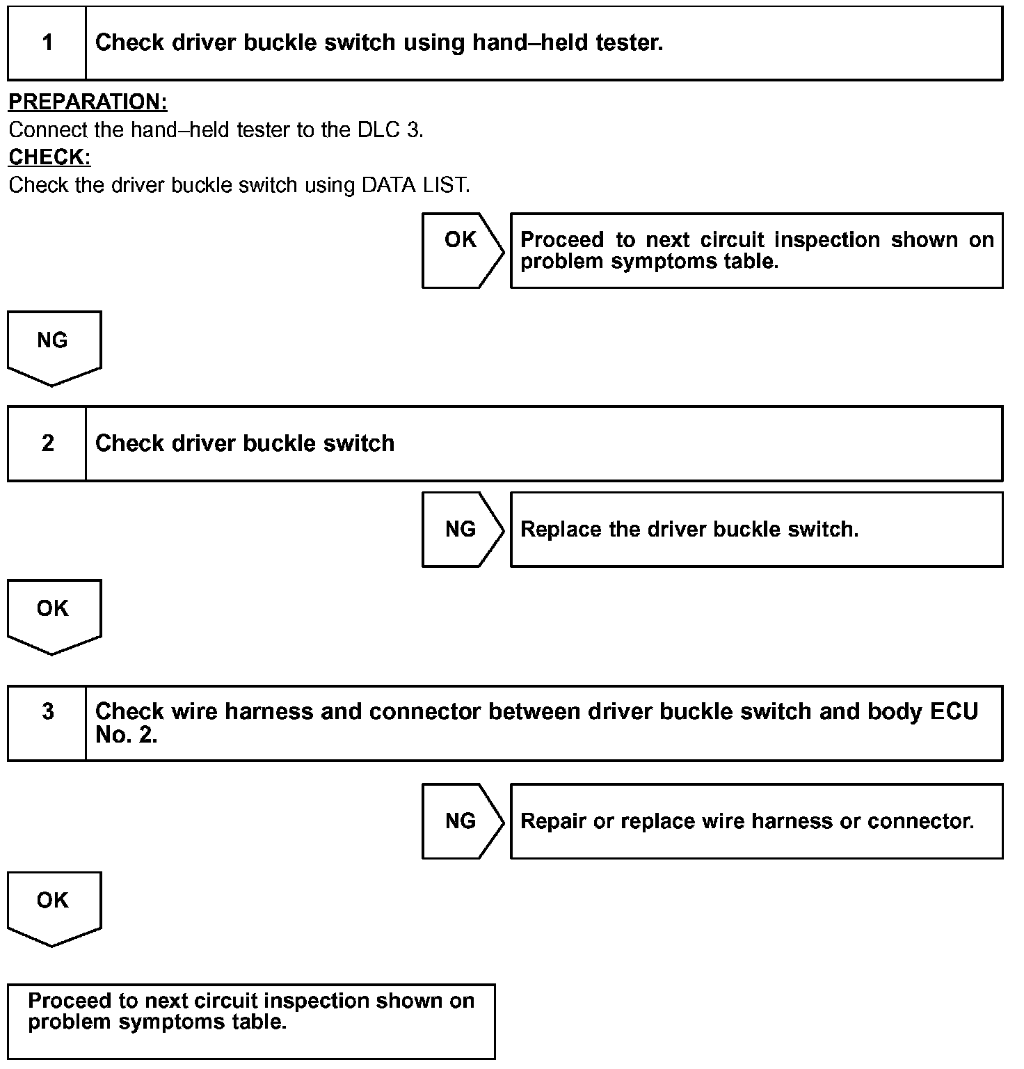In case of using the hand-held tester, start the inspection from step 1 and in case of not using the hand-held tester, start from step 2.