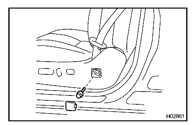 b. Remove the front seat outer belt floor anchor bolts and seat belt anchor.
