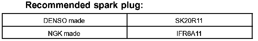 Standard electrode gap: 1.0 - 1.1 mm (0.0394 - 0.043 in.)