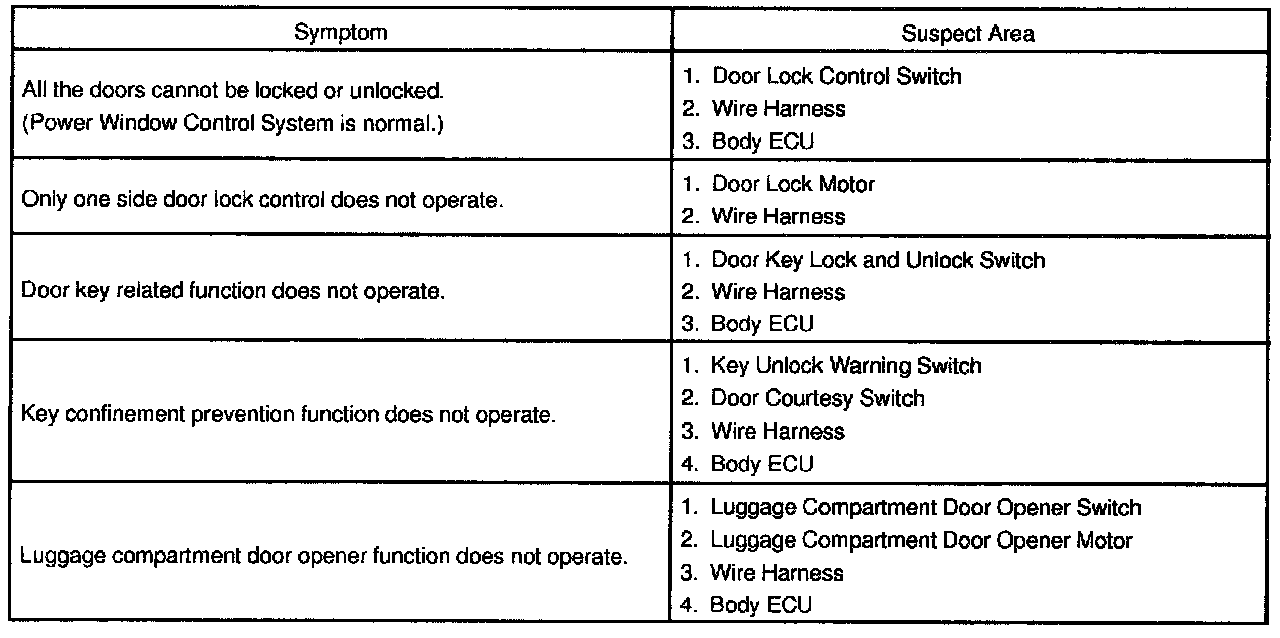 PROBLEM SYMPTOMS TABLEProblem Symptoms Table - Power Door Lock Control System: