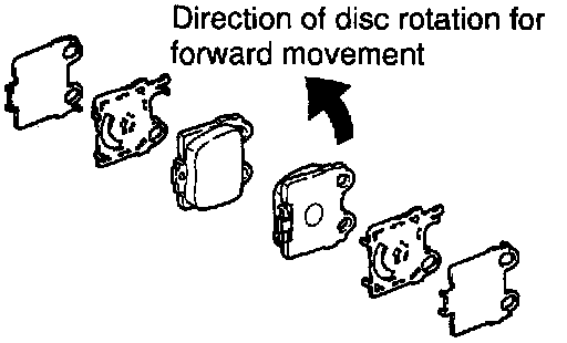 HINT: Make sure the arrows on the inner anti-squeal shims facing to the direction of disc rotation as shown in the illustration.