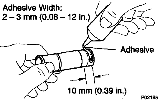 a. Apply adhesive to the end of the heater union as shown in the illustration.