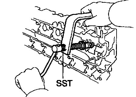 c. Using SST, compress the valve spring and place the 2 keepers around the valve stem.