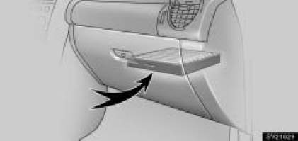 Cabin Air Filter1. Remove the glove box. Remove belongings in the glove box, and remove the 2 pins installed on the lower part of the glove box and remove the glove box.