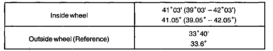 If the right and left inside wheel angles differ from the specified value, inspect the toe-in.