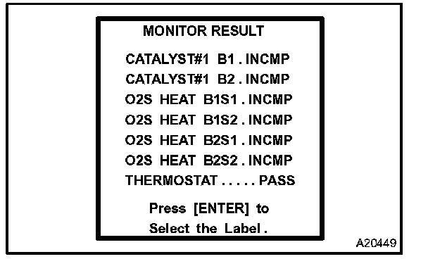 CHECKING MONITOR STATUSHINT: "MONITOR RESULT" indicates normal or malfunction of each component and system when judgment has done.