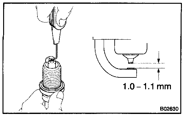 Correct electrode gap for new spark plug: 1.1 mm (0.043 in.)