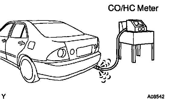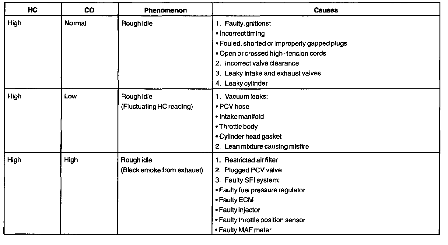HINT: When doing the 2 mode (2,500 rpm and idle) test, follow the measurement order prescribed by the applicable local regulations. If the CO/HC concentration does not comply with regulations, troubleshoot in the order given.