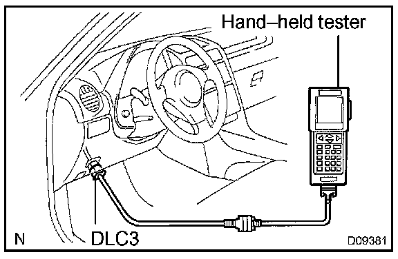 1. Connect the OBD II scan tool or hand-held tester to the DLC3.