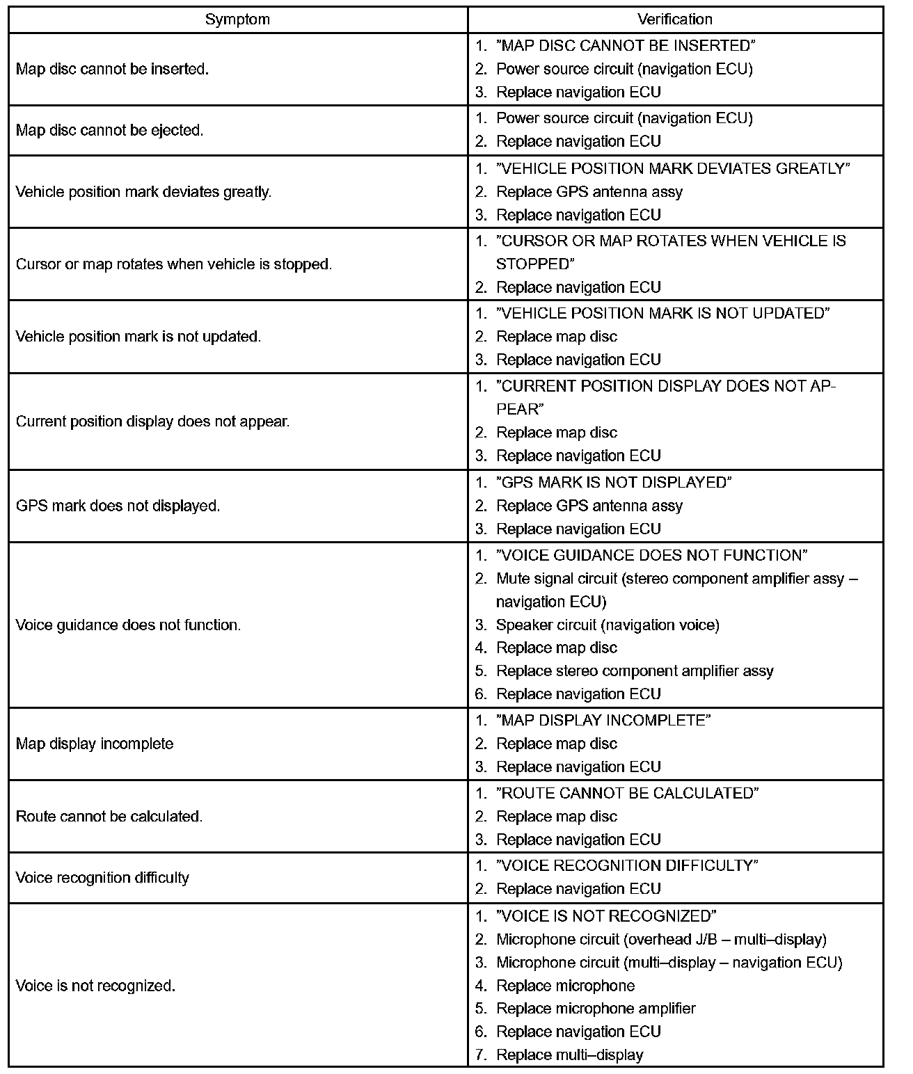 Problem Symptoms Table - Navigation Function: