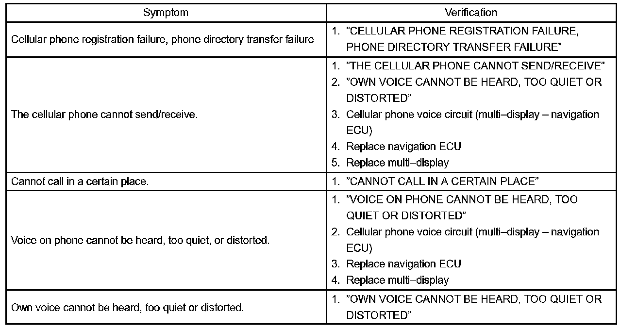 Problem Symptoms Table - Blue Tooth Function: