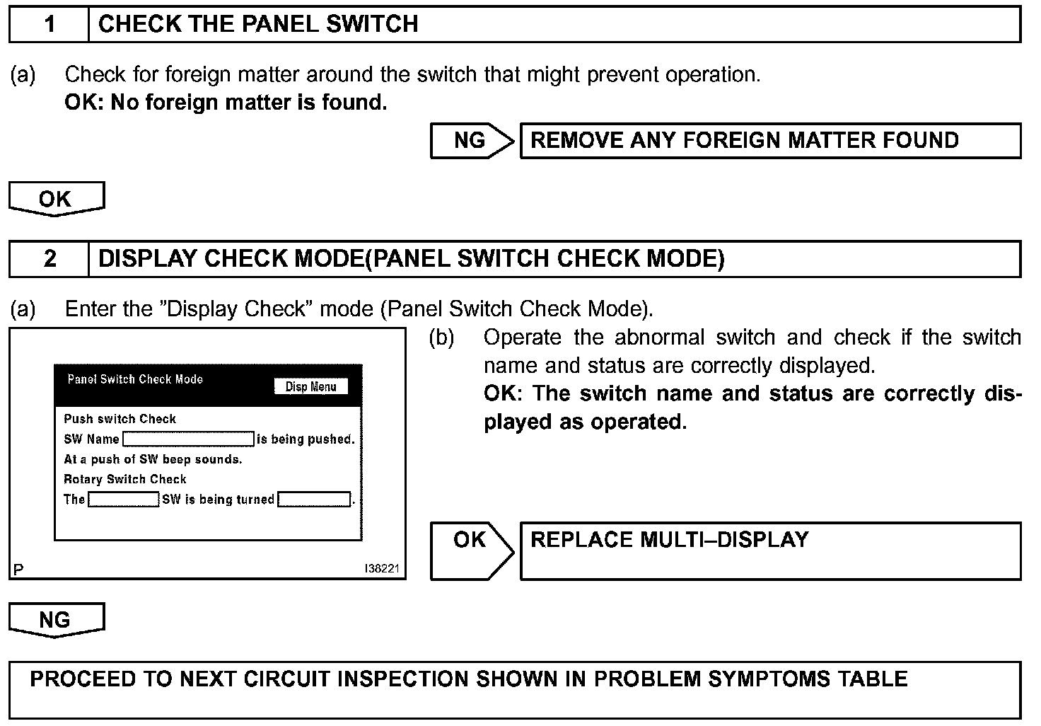 PANEL SWITCH DOES NOT FUNCTION