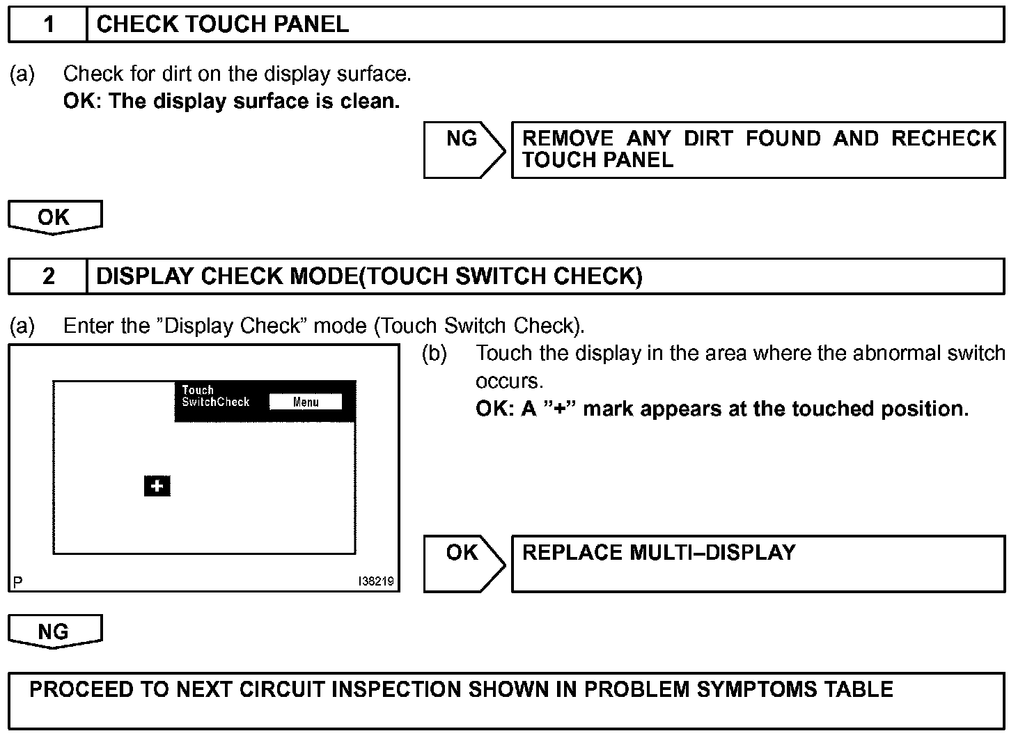 TOUCH PANEL SWITCH DOES NOT FUNCTION