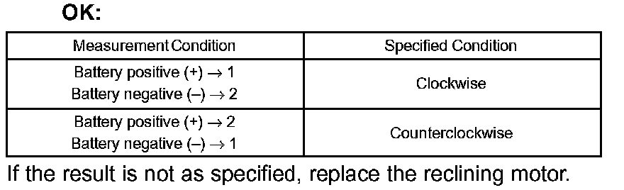 1. Check if the motor rotates smoothly when the battery is connected to the reclining motor connector terminals.